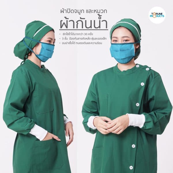 - หน้ากากอนามัย ผ้ากันน้ำ ผลิตจากผ้าฝ้าย COTTON 100% เคลือบสารกันน้ำ
