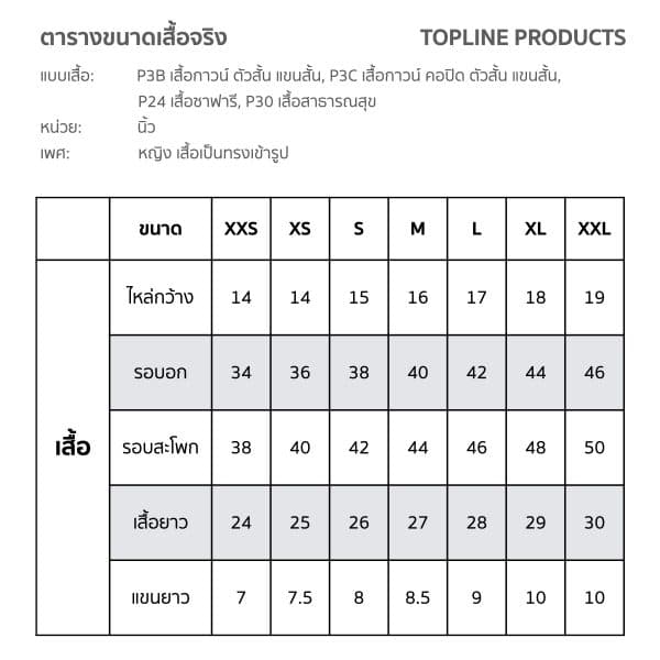 ตารางขนาดเสื้อซาฟารีแบบ P24