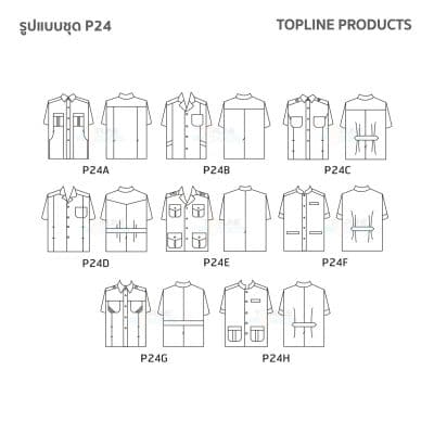 - เสื้อตัวสั้น แขนสั้น ผ่าหน้า ติดกระดุมยาว มีให้เลือกทั้งหมด 8 pattern (P24A, P24B, P24C, P24D, P24E, P24F, P24G, P24H)