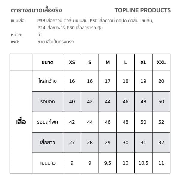 - มี ทั้งขนาดหญิงและชาย (ตามตารางแนบ)