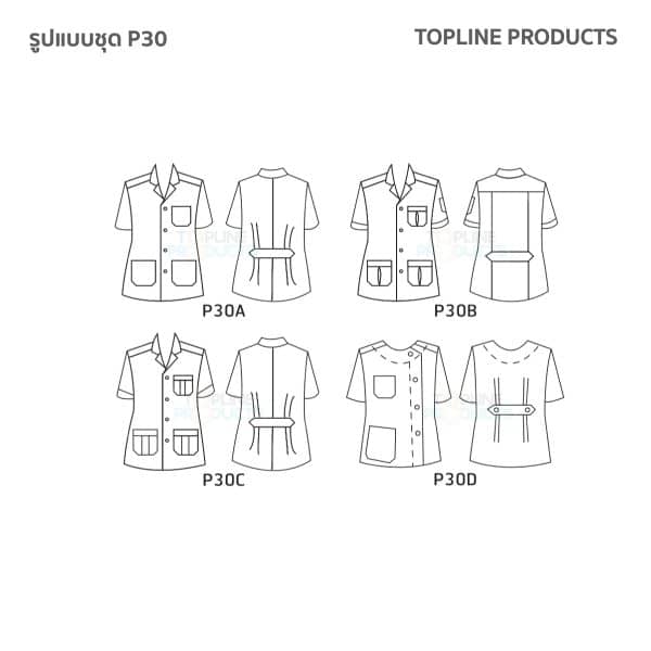 - เสื้อตัวสั้น แขนสั้น มีให้เลือกทั้งหมด 4 pattern (P30A, P30B, P30C, P30D)