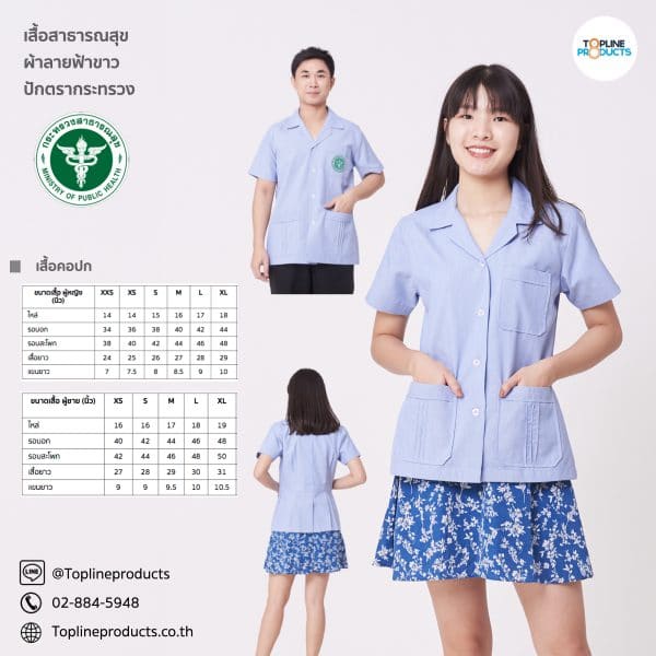 เหมาะสำหรับใช้เป็นเสื้อริ้วอนามัย เสื้อออกหน่วย เครื่องแบบเจ้าหน้าที่กระทรวงสาธารณสุข