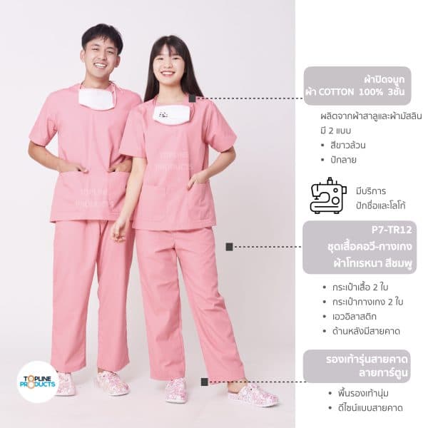 เหมาะสำหรับเป็น ชุดปฏิบัติงานเจ้าหน้าที่ในโรงพยาบาล และบุคลากรทางการแพทย์ ในแผนกต่างๆ