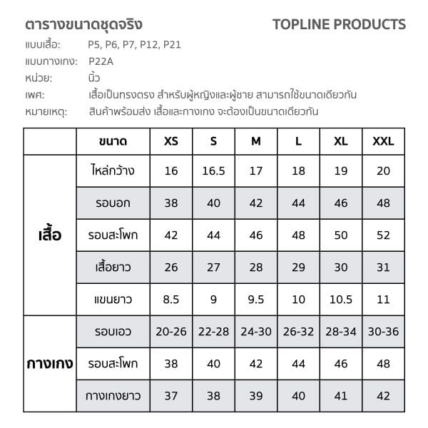 ตารางขนาดชุดเสื้อและกางเกงแบบ P7