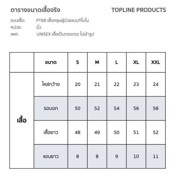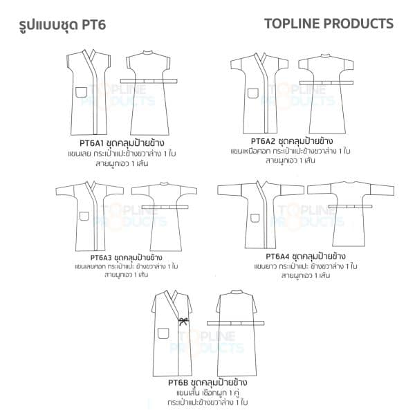 แบบและตารางขนาดชุดผู้ป่วยแบบ PT6