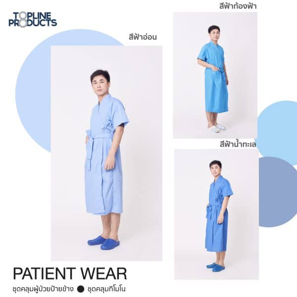 เหมาะสำหรับใช้เป็นชุดคลุมผู้ป่วยในโรงพยาบาล ชุดเปลี่ยนสำหรับลูกค้าคลินิก หรือสำหรับผู้ที่กลับมาพักฟื้นที่บ้าน